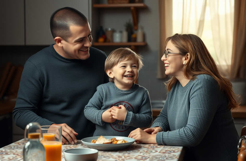 E proprio mentre discutevamo, si svegliò il piccolo Michele. Scese dal divano, arrivò in cucina e tese le braccia verso Sergio.