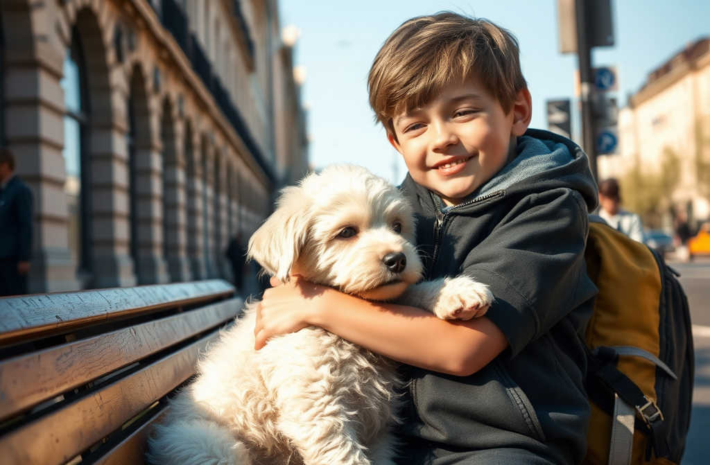 E allora Michele, dimenticando tutto, prese il cucciolo, lo strinse forte a sé. Aveva già deciso: se mamma e papà non avessero accettato il suo cane, quella notte sarebbe scappato via, insieme a lui.