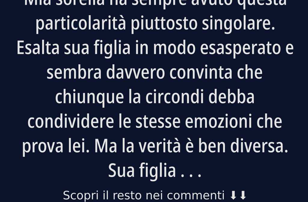 Mia sorella ha sempre avuto questa particolarità piuttosto singolare. Esalta sua figlia in modo esasperato e sembra davvero convinta che chiunque la circondi debba condividere le stesse emozioni che prova lei. Ma la verità è ben diversa.