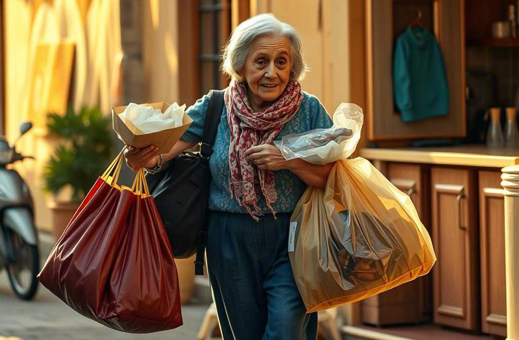 Senza pensarci, Caterina decise di darle le buste della spesa. Tanto, cargarle non era stato inutile. Con la pensione magra della signora Maria, Caterina le faceva sempre qualche regalo.
