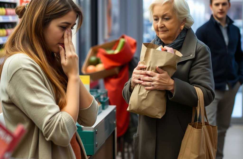Una volta in casa, lasciò tutta la spesa alla vicina, che si commosse vedendo le scatolette di sgombro, i biscotti e le pesche sciroppate che non poteva permettersi.