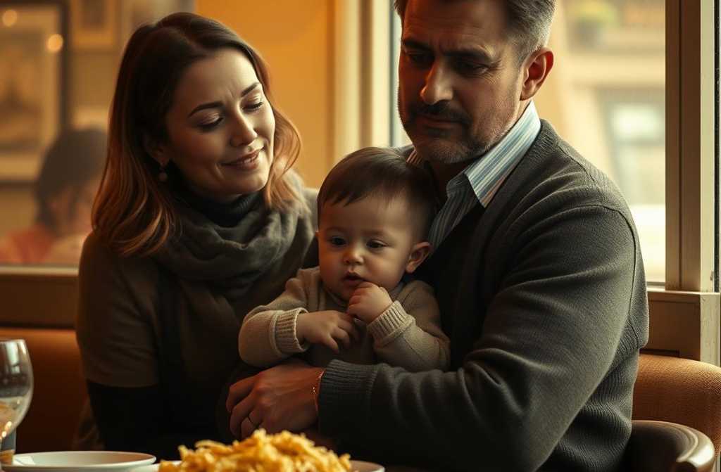 Beatrice si gelò, la forchetta sospesa a mezzaria, e si voltò verso un uomo inginocchiato accanto al suo tavolo. Non avrà avuto più di trentacinque anni, ma la vita lo aveva invecchiato. Legati al petto con uno straccio, portava due gemellini, i loro visini pallidi e denutriti. Luomo indossava jeans strappati e una maglietta senza maniche macchiata di polvere e sudore. Tremava, non per paura, ma per lesaurimento. Eppure, nei suoi occhi non cera vergogna, solo lamore disperato di un padre.