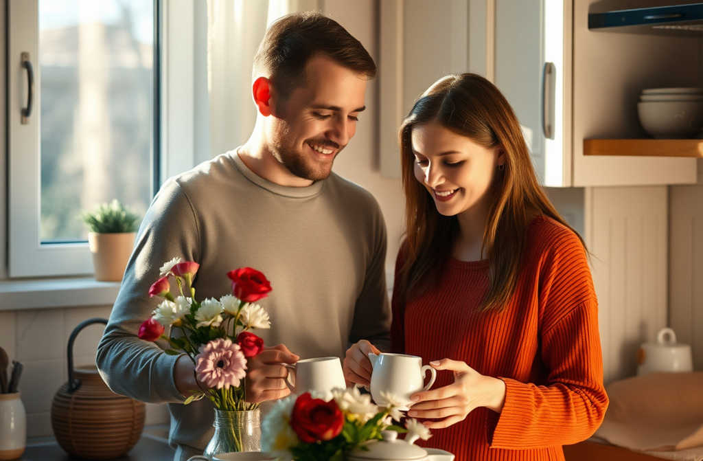 Ritorna in una casa pulita, con un marito che ha cucinato da solo e le porta i fiori.