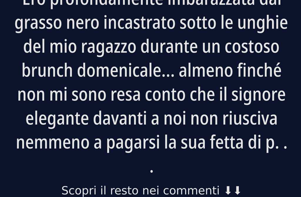 Ero profondamente imbarazzata dal grasso nero incastrato sotto le unghie del mio ragazzo durante un costoso brunch domenicale almeno finché non mi sono resa conto che il signore elegante davanti a noi non riusciva nemmeno a pagarsi la sua fetta di pane con avocado.