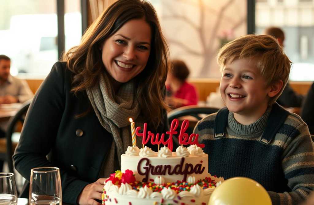 La torta era decorata con la scritta: «Congratulazioni, Nonno!»