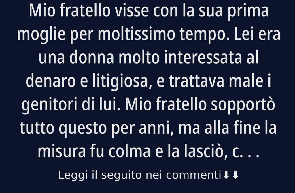 Mio fratello visse con la sua prima moglie per moltissimo tempo. Lei era una donna molto interessata al denaro e litigiosa, e trattava male i genitori di lui. Mio fratello sopportò tutto questo per anni, ma alla fine la misura fu colma e la lasciò, chiedendo il divorzio. Si risposò, la seconda volta, con una donna che aveva già una figlia. Mio fratello però non ebbe mai figli, né dal primo matrimonio né dal secondo. Purtroppo, poco dopo il matrimonio, anche la seconda moglie venne a mancare. La figliastra si sposò e lasciò la casa.