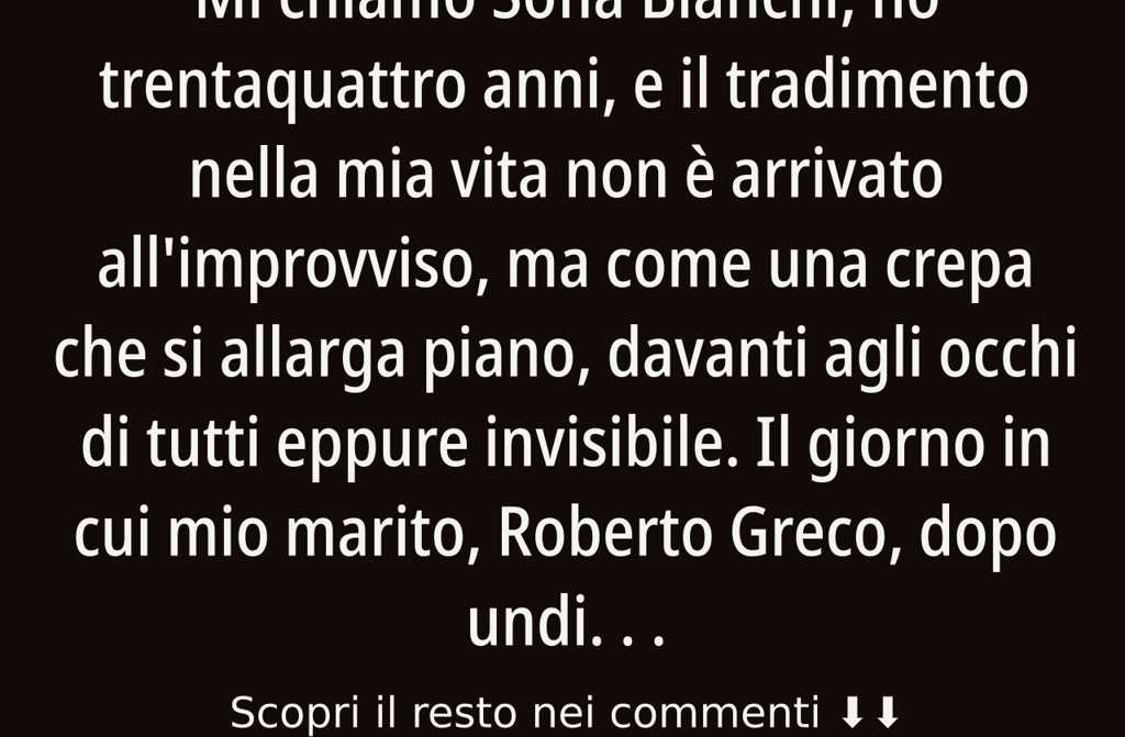 Mi chiamo Sofia Bianchi, ho trentaquattro anni, e il tradimento nella mia vita non è arrivato all’improvviso, ma come una crepa che si allarga piano, davanti agli occhi di tutti eppure invisibile. Il giorno in cui mio marito, Roberto Greco, dopo undici anni di matrimonio, mi ha chiesto il divorzio, lha fatto con una freddezza che sembrava studiata. Ha detto che non provava più le stesse cose, che aveva bisogno di ricominciare da capo. Ho pianto, supplicato, chiesto cosa avessi sbagliato. Lui non mi guardava nemmeno.