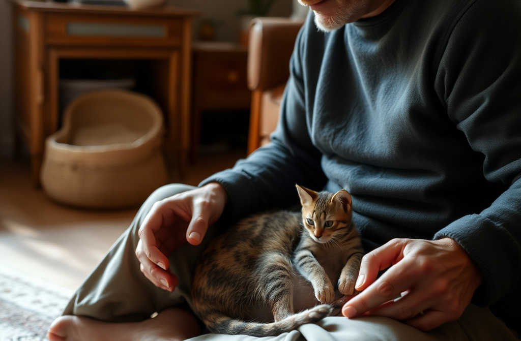 Accanto, sul cuscino grigio, riposava Aramis. Il gatto anziano, avvolto in una palla, dormiva, ma la zampa poggiata sulla mia coscia sembrava temere che scomparissi, proprio come i suoi precedenti padroni. Ogni mio movimento lo faceva alzare la testa e annusare laria; si calmava solo quando lo accarezzavo dolcemente e gli dicevo che ero lì.