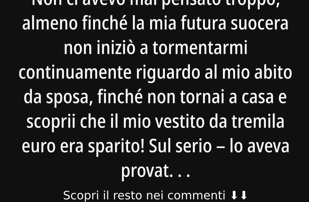 Come hai potuto, Luca? Ho strappato il telefono e chiamato Paola. Lei non è nemmeno della mia taglia, e anche se lo fosse, QUELLO È IL MIO ABITO DA SPOSA! Non è un vestitino qualsiasi del mercato.