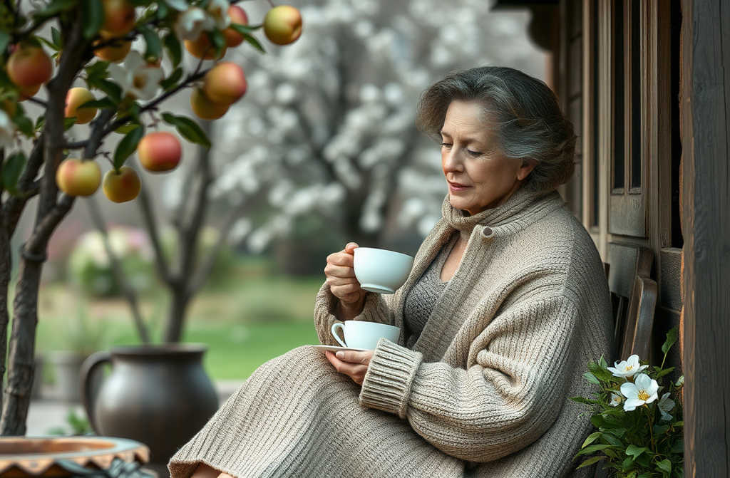 Seduta in veranda, con una tazza di tè, il maglione di papà sulle spalle, lalbero di mele davanti a me.