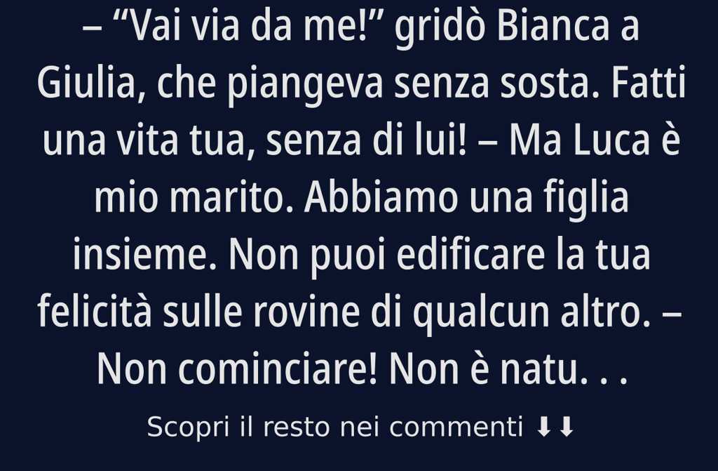 Vai via da me! gridò Bianca a Giulia, che piangeva senza sosta. Fatti una vita tua, senza di lui!