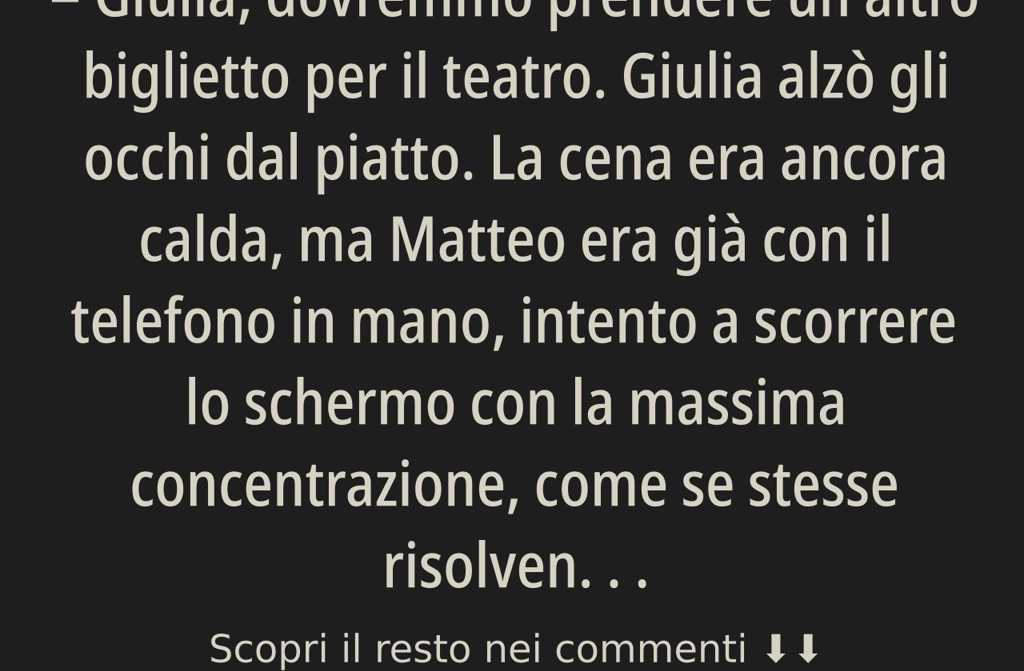 Giulia alzò gli occhi dal piatto. La cena era ancora calda, ma Matteo era già con il telefono in mano, intento a scorrere lo schermo con la massima concentrazione, come se stesse risolvendo una questione di vitale importanza.