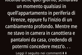 A metà settembre, si svegliò di colpo con un dolore acuto, come se la pancia si fosse spaccata. Poi il dolore si placò, ma tornò subito. Corse da zia Maria, che capì tutto vedendo la sua espressione.