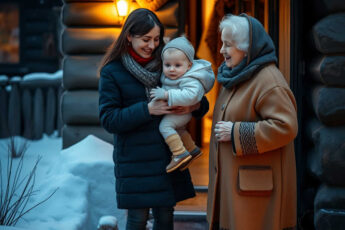 “È ora di tornare a casa. I tuoi vestiti sono ghiacciati, e i guanti sono due blocchi di neve! Andiamo. Passiamo al supermercato a prendere latte e pasta,” disse Beatrice in fretta.