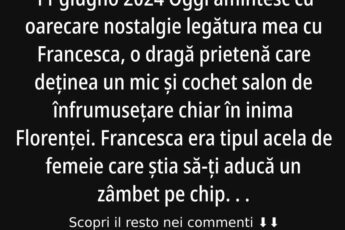 11 giugno 2024 Oggi amintesc cu oarecare nostalgie legătura mea cu Francesca, o dragă prietenă care deținea