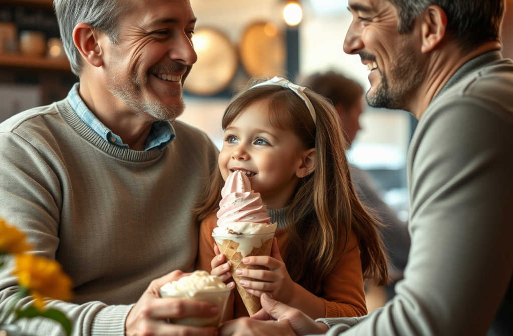 Sofia sospirò, come se un peso le fosse scivolato dal cuore. Finalmente affondò il cucchiaino nel suo gelato. Ma non aveva ancora finito: doveva dire la cosa più importante. Così, con i baffetti colorati sotto il naso, si ripulì con la lingua e tornò seria, quasi adulta.