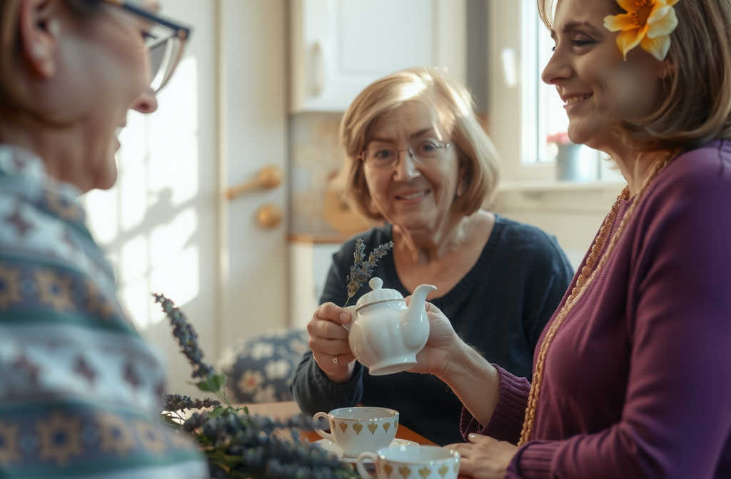 Durante il tè si parla della casa, dei lavori, delle linee di autobus. Un tranquillo pomeriggio tra persone che non devono dimostrare niente.