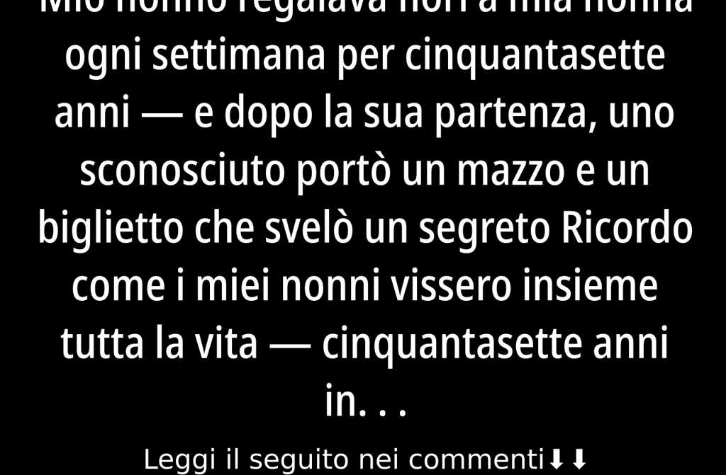 Il segno più costante di questa tenerezza erano i fiori. Ogni sabato mattina, nonno Giuseppe tornava dal mercato con un mazzo fresco per nonna Lucia, senza mai saltare una settimana né la pioggia, né la stanchezza, né gli impegni riuscivano a fermarlo.