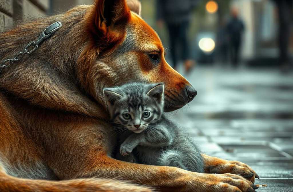 Il cane si agitava, teso, ascoltando i miagolini disperati. Il micino grigio lo cercava. Chiamava la mamma.