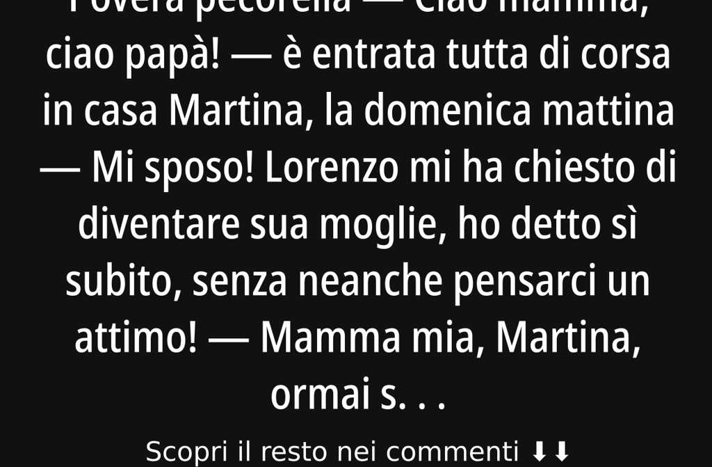 Mamma mia, Martina, ormai sei proprio cresciuta ha detto Maria alzando le mani e lanciando uno sguardo a suo marito, Giovanni, che era seduto serio, tutto riflessivo con questa notizia da mandare giù.