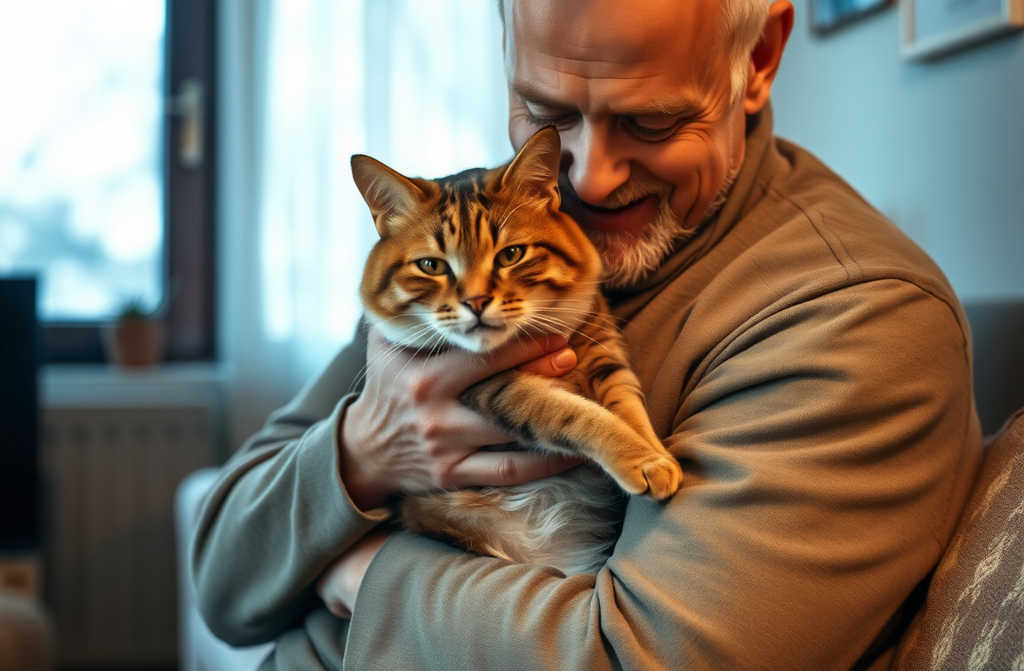 Per non sentirmi troppo solo, un giorno ho deciso di adottare un gattino. Il piccolo aveva un difetto alle zampe anteriori. I proprietari della madre, vedendolo così, volevano farlo sopprimere, ma mi fece talmente pena che lho preso con me. Lho chiamato Belloccio. Da allora siamo stati inseparabili: ogni sera tornavo di corsa dal lavoro, e Belloccio mi attendeva sulla soglia, miagolando.