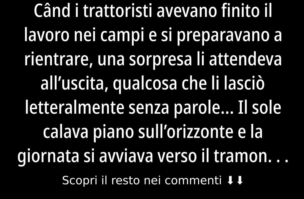 Când i trattoristi avevano finito il lavoro nei campi e si preparavano a rientrare, una sorpresa li attendeva alluscita, qualcosa che li lasciò letteralmente senza parole
