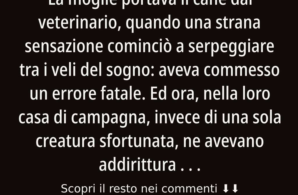 La moglie portava il cane dal veterinario, quando una strana sensazione cominciò a serpeggiare tra i veli del sogno: aveva commesso un errore fatale. Ed ora, nella loro casa di campagna, invece di una sola creatura sfortunata, ne avevano addirittura due…