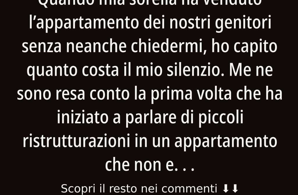 Quando mia sorella ha venduto lappartamento dei nostri genitori senza neanche chiedermi, ho capito quanto costa il mio silenzio.