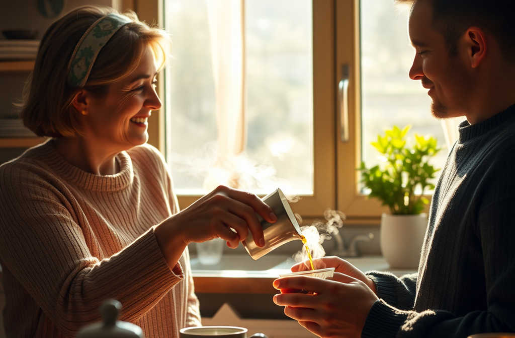Giovanna sistemò le tazze, tirò fuori dei biscotti e, poco dopo, Andrea tornò più calmo.