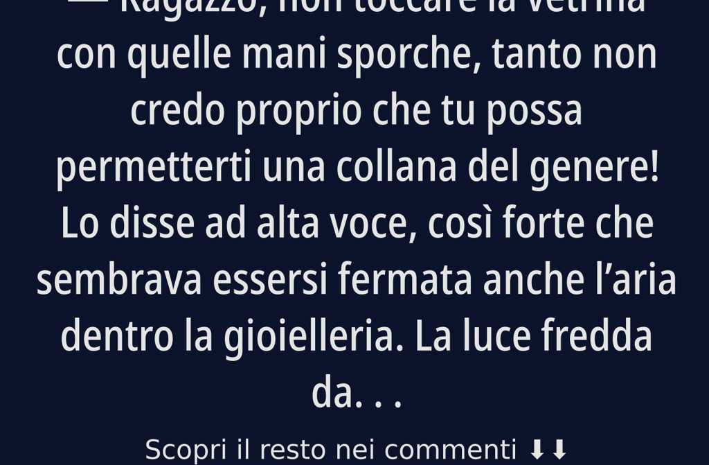 Lui ritrasse subito la mano. Non perché si vergognasse delle sue mani, ma perché si sentiva piccolo. Non piccolo come persona. Piccolo di fronte al disprezzo.