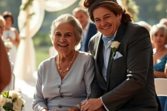 “Non lo so. Mamma ha tenuto il segreto fino all’ultimo,” risponde lo sposo, perplesso.