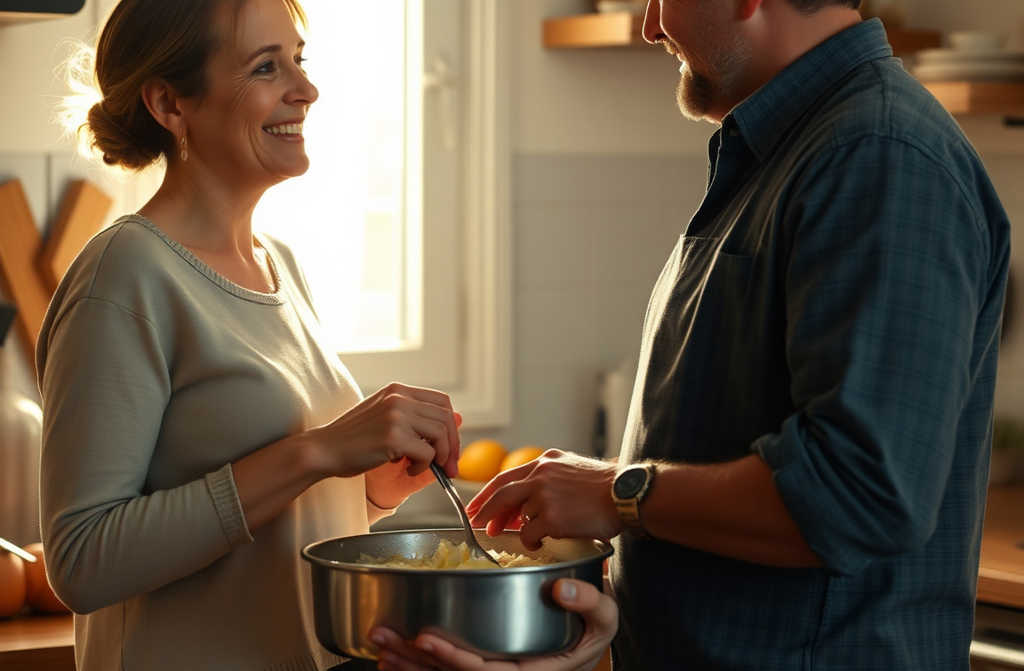 E lì gli ho detto che per tornare a casa con me, avrebbe dovuto iscriversi subito a un corso di cucina. Quando torno gli ho detto tu cucinerai e pulirai, adesso tocca anche a te. Ha accettato subito ma ora vediamo se davvero cambia, eh!