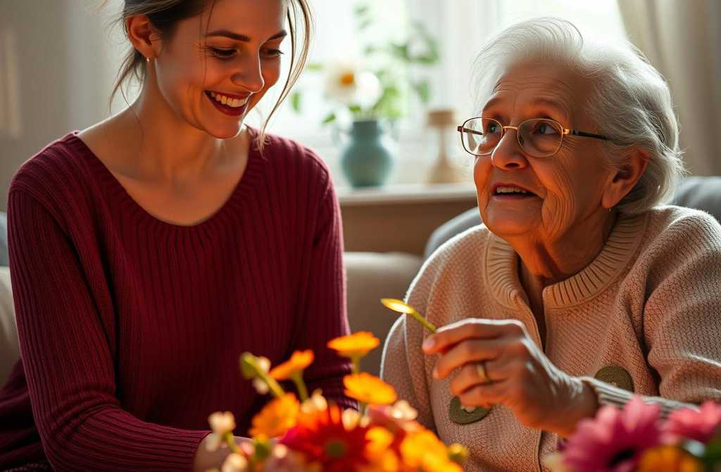 Ciao mamma! Oggi ho avuto una giornata bellissima, volevo raccontartela! E questi sono per te, e la ragazza pose dei fiori sul tavolo.