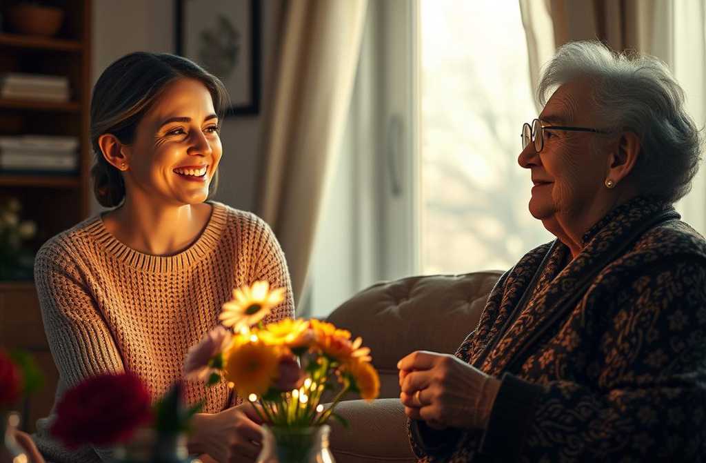 Ciao mamma! Oggi ho avuto una giornata bellissima, volevo condividere la mia gioia con te! Ecco, questo è per te, e depose sul tavolo un mazzo di fiori.