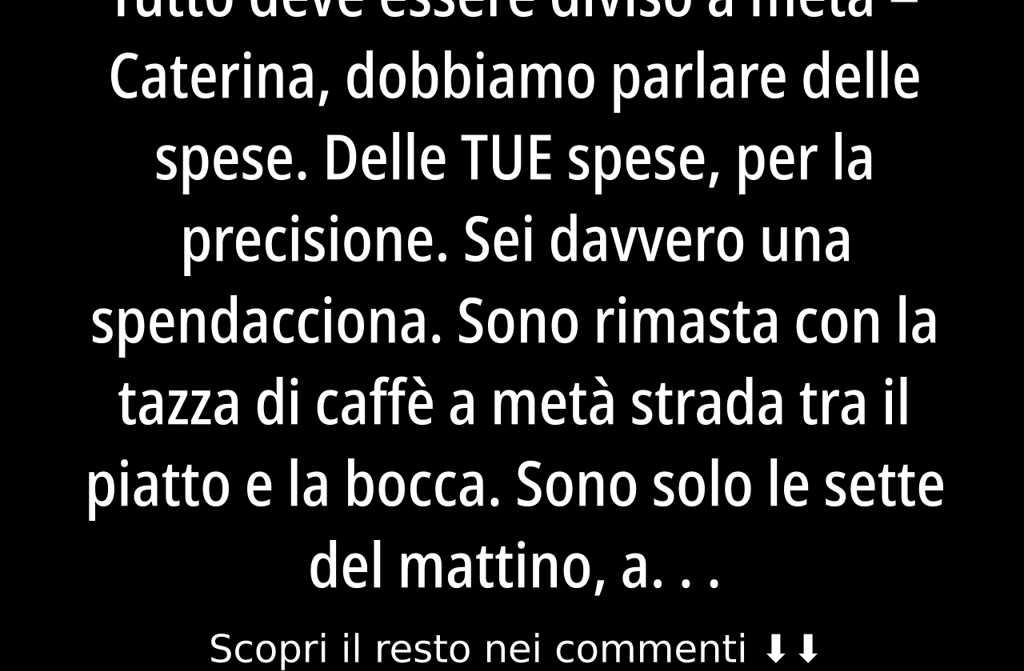 La settimana è scivolata lenta. Ogni sera, ho cucinato esattamente per due, porzioni identiche. Marco guardava prima il suo piatto, poi il mio, contrariato ma in silenzio. Ogni mattina chiedevo quanto prevedeva di spendere in benzina e ogni sera prendevo la mia metà.