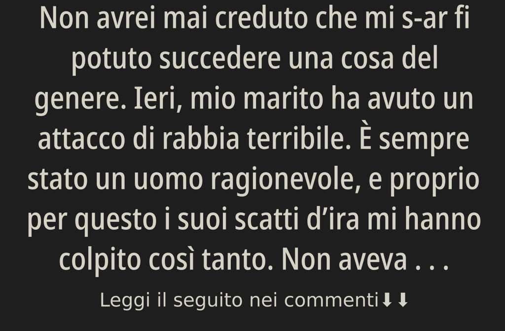 Non avrei mai creduto che mi s-ar fi potuto succedere una cosa del genere. Ieri, mio marito ha avuto un attacco di rabbia terribile.