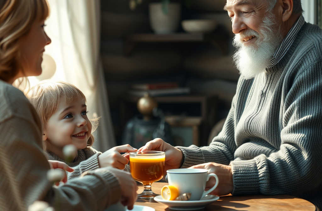 Seduti davanti al tè, chiacchierano e si aggiornano.