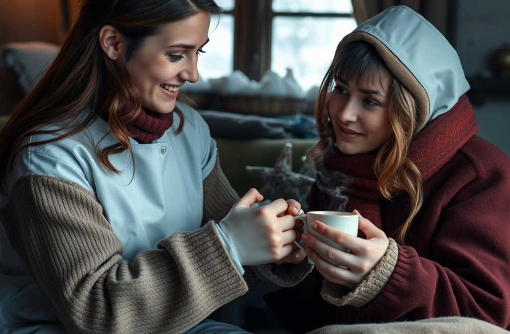 Lorenzo sobbalzò, quasi cadde dal portico. Di fronte a lui apparve una ragazza alta, avvolta in un cappotto di pelliccia e una cuffia bianca, gli occhi azzurri brillavano come il mare. Un velo di rosa colorava le guance, e un sorriso le dipingeva il volto.