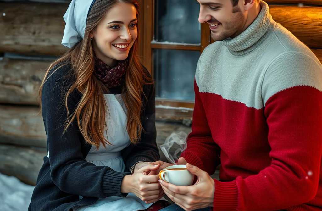Luca sobbalzò, quasi cadde dal portico. Davanti a lui apparve una giovane donna slanciata, avvolta in un cappotto di pelle e con un berretto bianco, gli occhi azzurri che scintillavano. Le guance arrossate dal freddo, un sorriso timido le adornava il volto.