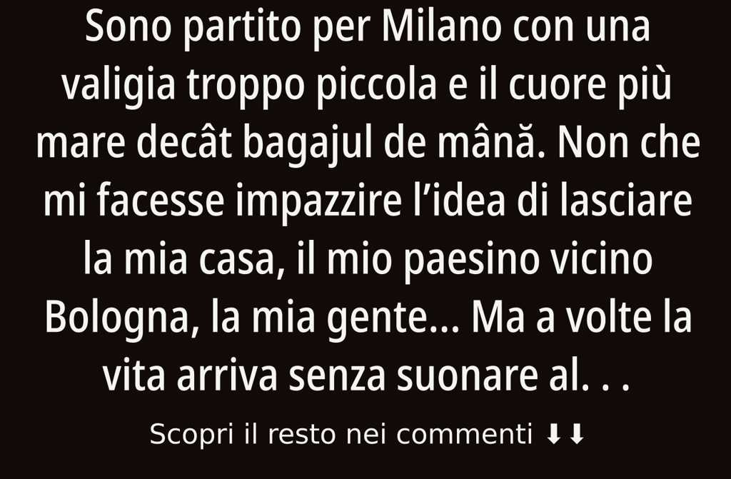 Sono partito per Milano con una valigia troppo piccola e il cuore più mare decât bagajul de mână.