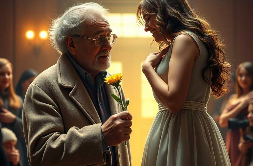 Sul palco salì un uomo anziano. Le sue mani erano ruvide, lo sguardo dolce.