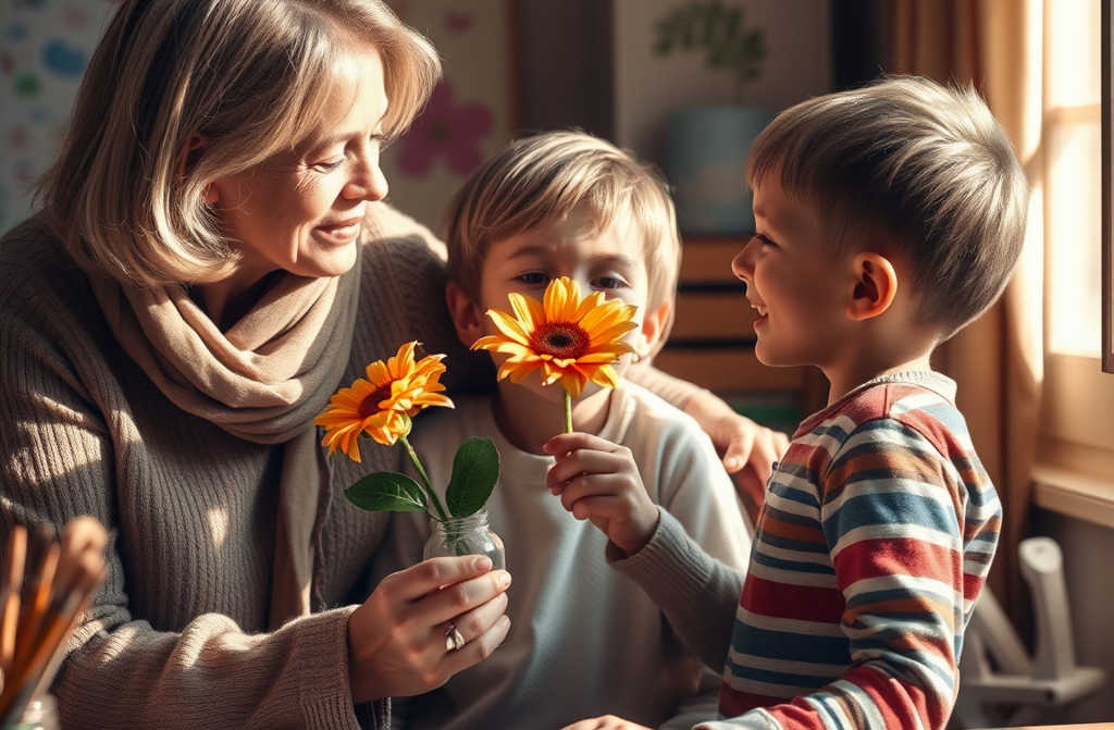 Sarà proprio felice tua madre, Tommaso. Ma aspetta ancora un attimo, non chiudere subito lalbum. Lascia asciugare bene la tempera, così non si rovina. Quando arrivi a casa, lo staccherai con calma. Vedrai che le piacerà tantissimo!