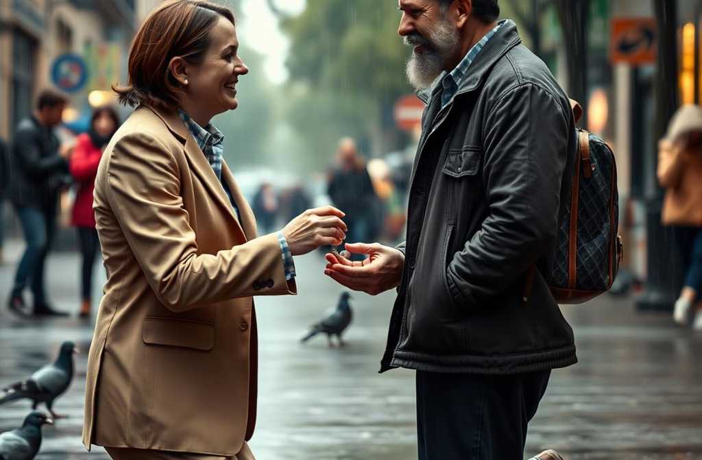 L’uomo a cui si rivolgeva? Aveva la barba incolta da settimane, indossava un cappotto rattoppato e dormiva in un vicolo a due passi dalla Borsa di Milano.