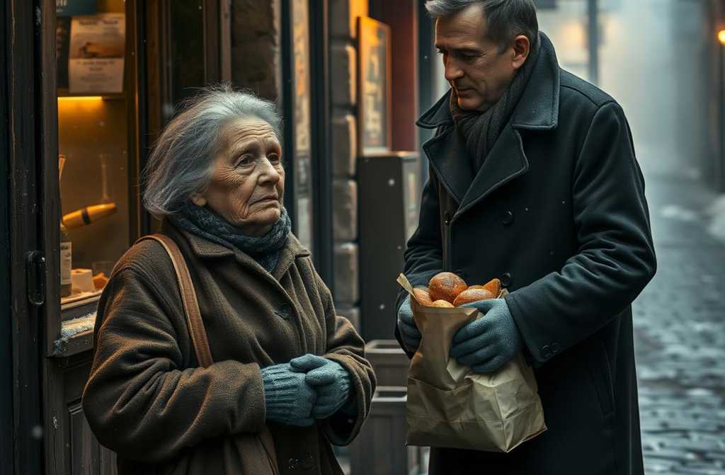 “Ti prego, piccola, abbi pietà di me. Sono tre giorni che non mangio neanche un pezzetto di pane, e non ho più un soldo,” supplicava la vecchietta alla panettiera.