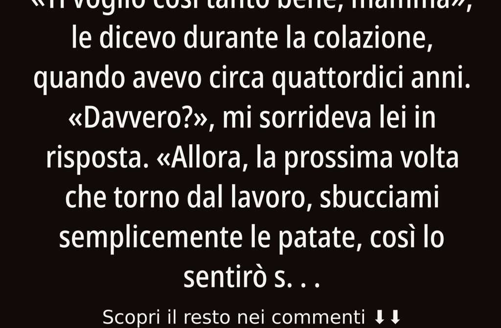 «Davvero?», mi sorrideva lei in risposta. «Allora, la prossima volta che torno dal lavoro, sbucciami semplicemente le patate, così lo sentirò senza bisogno di parole».