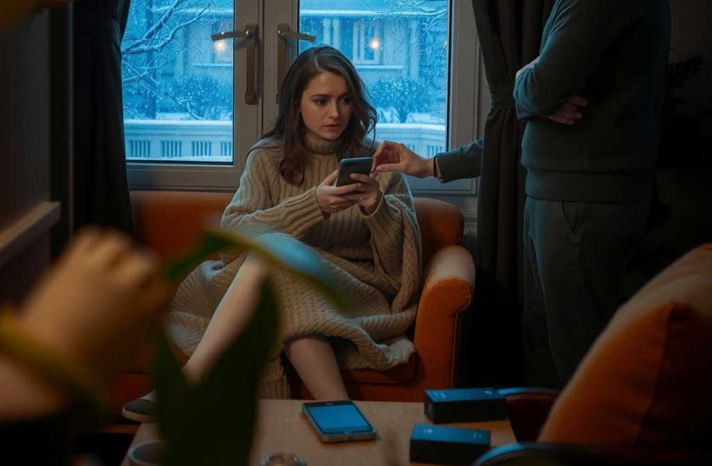 Chiude la chiamata, lascia il telefono sul tavolo e guarda fuori dalla finestra. La neve cade lenta, come se nulla fosse accaduto.