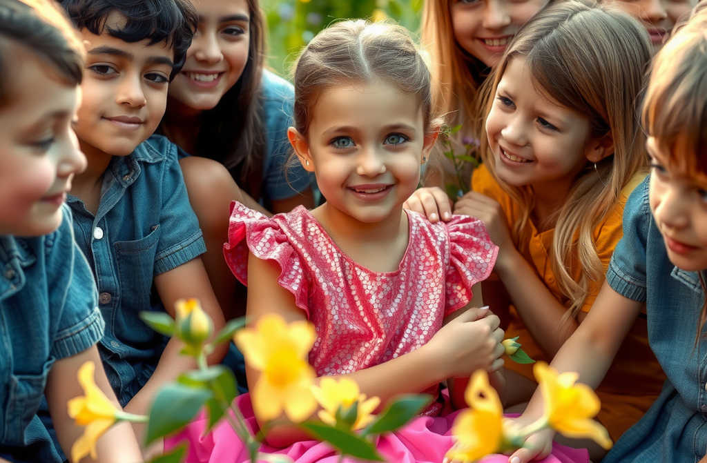 Eppure, il giorno del compleanno di Lavinia, lei arrivò a scuola con un vestito nuovo, tutto rosa chiaro. Era splendente, con sfumature tenui e lorlo decorato da perline che luccicavano ad ogni movimento. Tutti i bambini la guardarono ammirati e le fecero tanti complimenti.