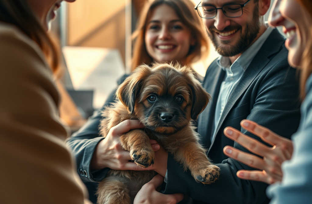 Un giorno, porto in ufficio un cucciolo randagio Succede così, per caso. Lho trovato a cinque minuti dallinizio della giornata lavorativa. Era un cucciolo sporco, piccolo e dallaspetto trasandato, figlio di nessuno. Decido di nasconderlo in un angolo del mio ufficio ma il cucciolo testardo continua a sgusciare fuori e piagnucolare. Alla fine, lo vedono tutti i miei colleghi.