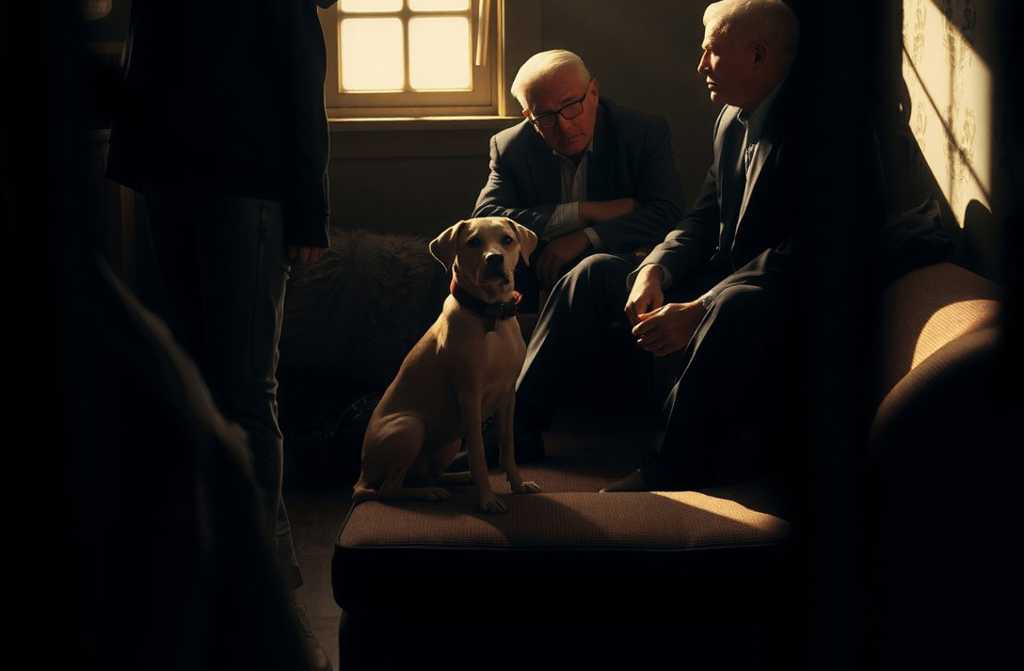 Poi accadde qualcosa: verso di loro trotterellò Vecioun cane anziano dal muso grigio, raccolto da Ludovica pochi giorni prima. Si avvicinò timido, poi si accoccolò sulle scarpe delluomo.