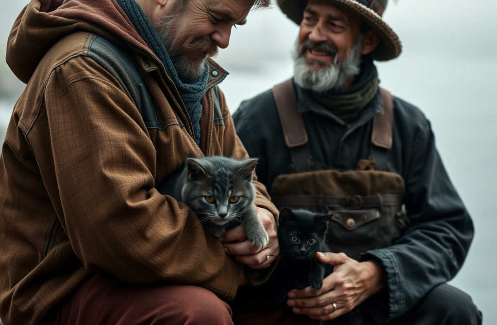 Non è giusto che tutto vada a te e a nessuno. Vieni, Grigio, vieni a vivere con me. Vado a pescare e tu sei il gatto giusto. Io sono luomo giusto. Non hai abbandonato il cucciolo.